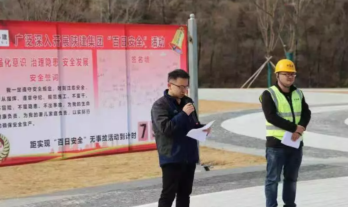 儀式上,陜建集團(tuán)南泥灣紅色文化小鎮(zhèn)建設(shè)項目常務(wù)副經(jīng)理屈曉東安排部署2019年重點安全注意事項,并貫穿落實集團(tuán)公司“百日安全”活動的宗旨。會上各參建單位公司經(jīng)理、項目經(jīng)理積極講述“百日安全”活動的重要性。開發(fā)公司工程管理部長白彥明并發(fā)表講話。